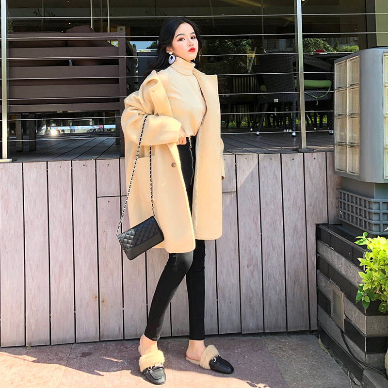 小香風秋冬新款韓版寬松中長款女裝呢子大衣加厚長袖氣質時尚外套