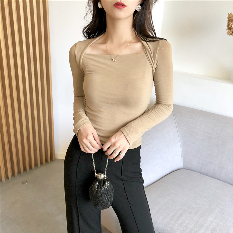/ 復古chic時尚2018新款純色修身百搭氣質T恤短款顯瘦長袖上衣女潮