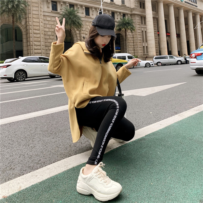 秋冬季新款韓版bf連帽長袖衛衣女寬松套頭上衣高腰打底褲時尚套裝