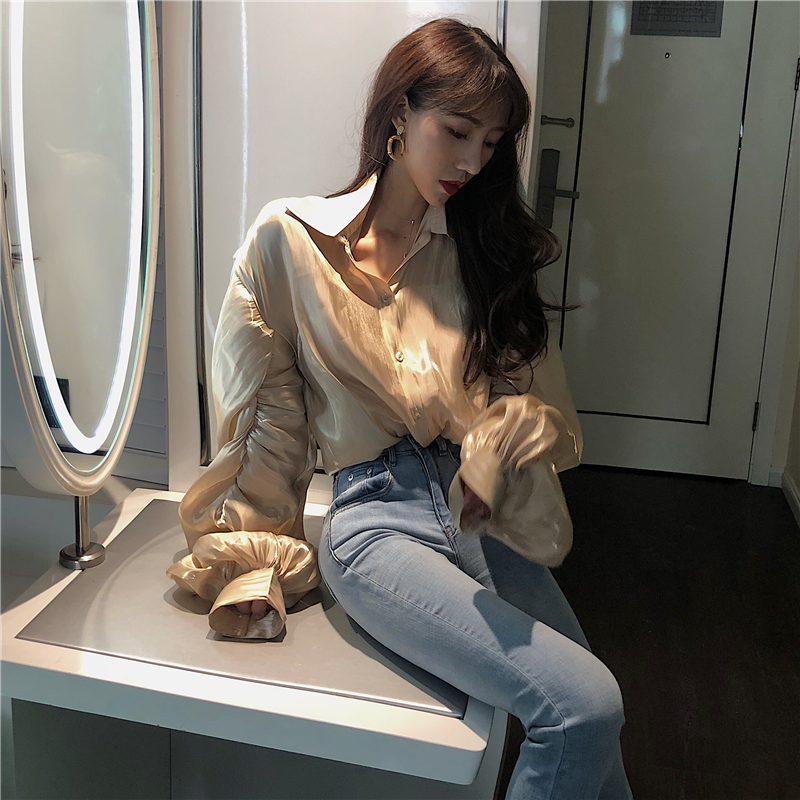 港風時尚韓版chic薄款襯衫2018新款秋裝設計感百搭長袖上衣氣質女