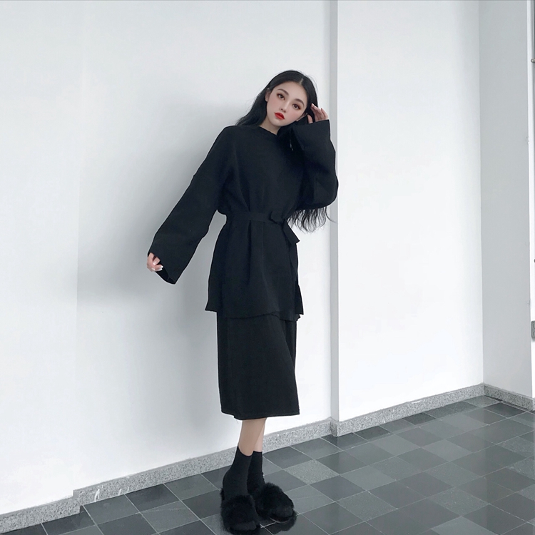 黑色連衣裙|咖啡色毛衣|黑色毛衣