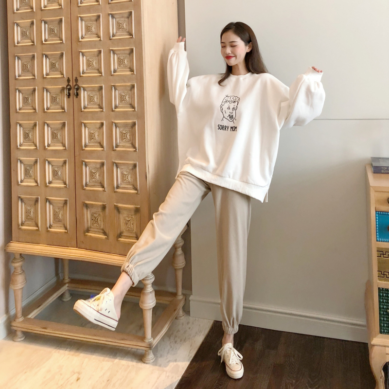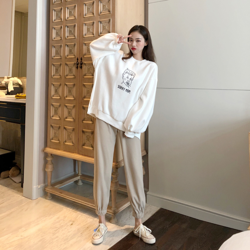 / 女神套裝冬寬松燈籠長袖加厚加絨衛衣女+高腰毛呢百搭束腳燈籠褲