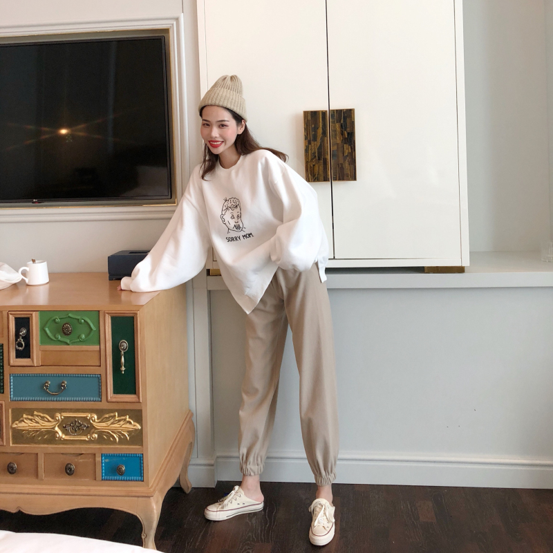女神套裝秋冬新款慵懶風套頭毛衣網紅寬松針織衫+百搭毛呢哈倫褲