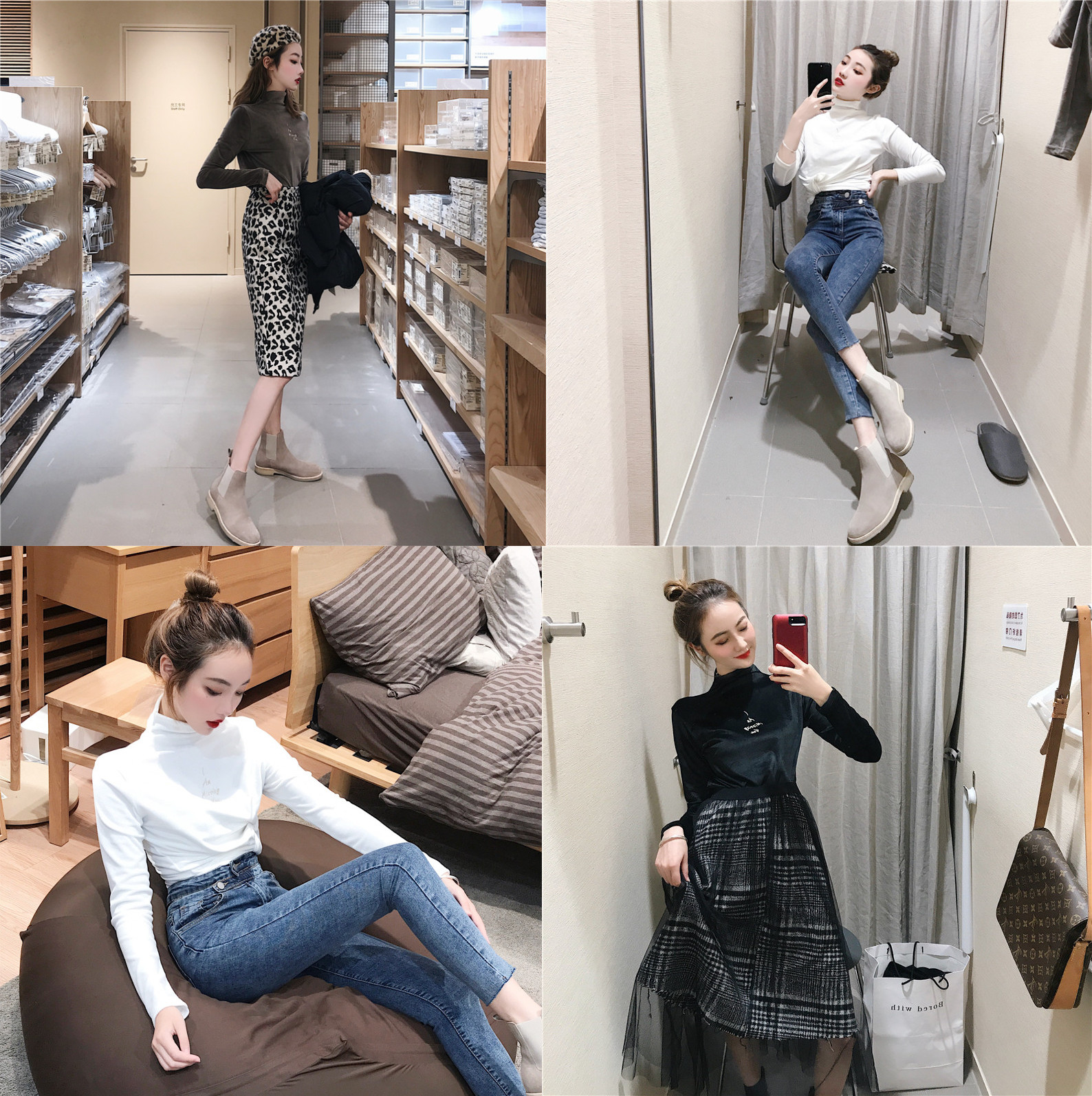 衛衣女秋冬2018新款加絨打底半高領字母刺繡親膚加厚長袖打底衫潮