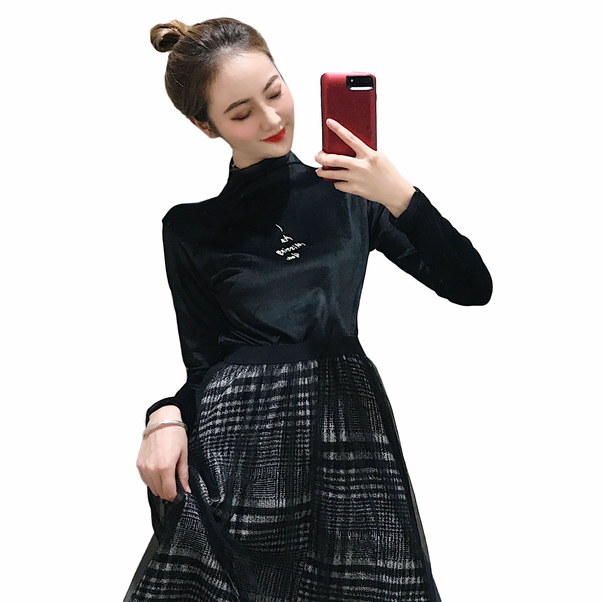 / 衛衣女秋冬2018新款加絨打底半高領字母刺繡親膚加厚長袖打底衫潮