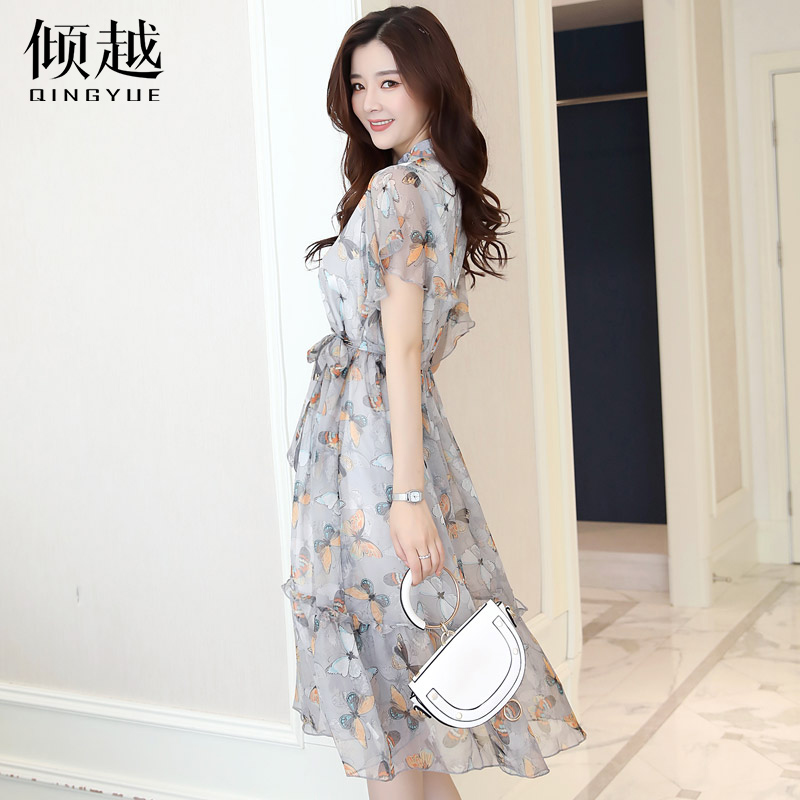 / 2017夏季短袖中長款韓版花色氣質連衣裙碎花小清新雪紡連衣裙女潮