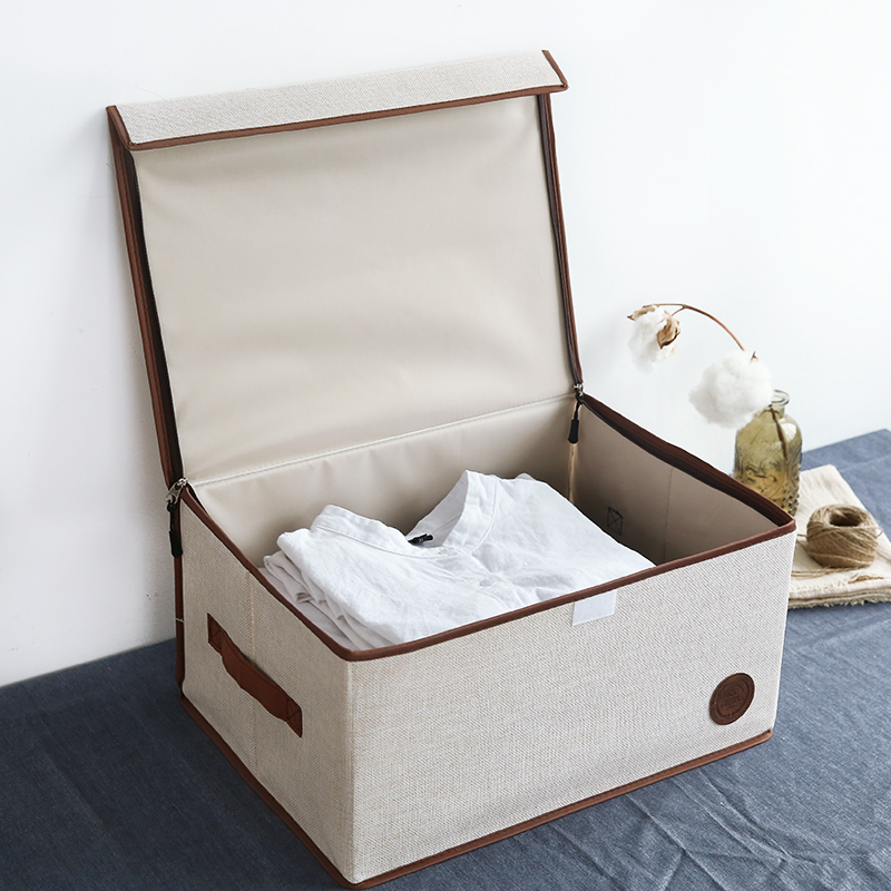 簡約布藝收納盒日韓風格雜物整理箱透氣麻布拉鏈收納箱