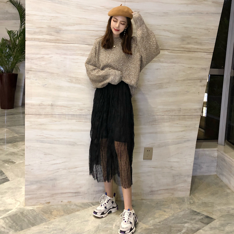 / 新款復古閃閃毛衣針織衫寬松慵懶風圓領長袖百搭chic風顯瘦上衣女