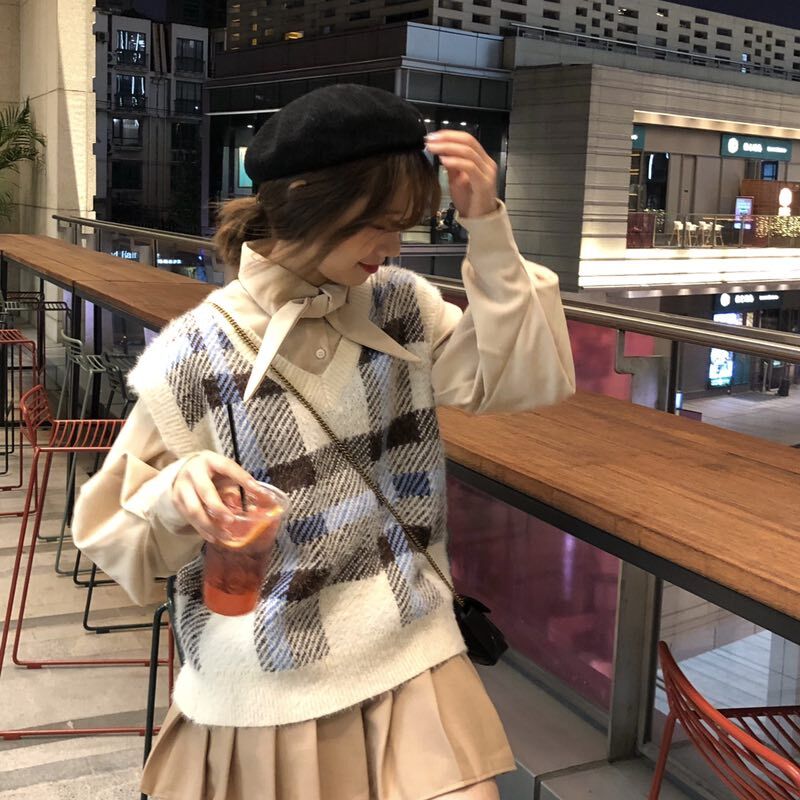 / 2018秋冬新款韓版拼色背心加厚襯衫百褶裙港風時尚套裝兩件套女潮