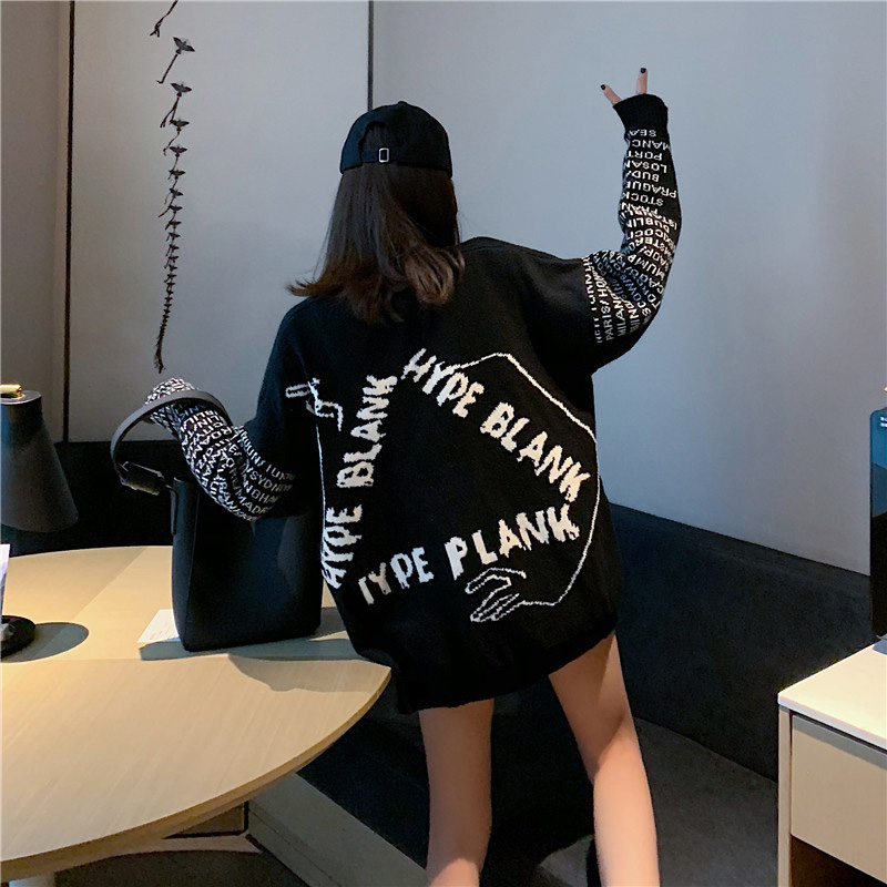 秋冬新款韓版時尚上衣復古chic百搭學生寬松慵懶風套頭兩面穿毛衣