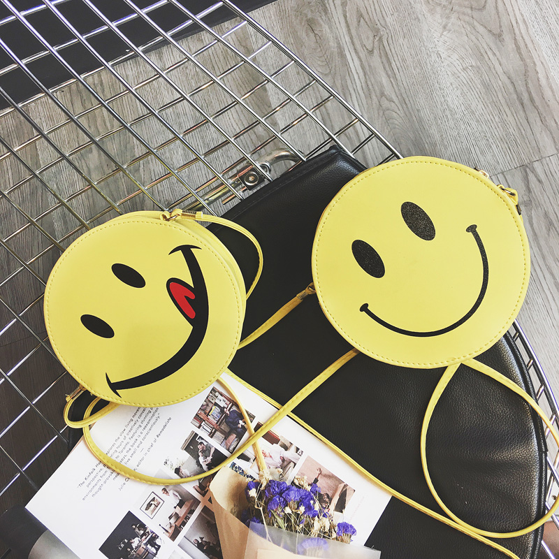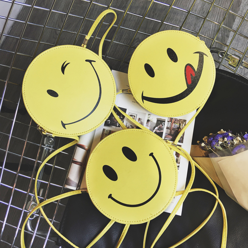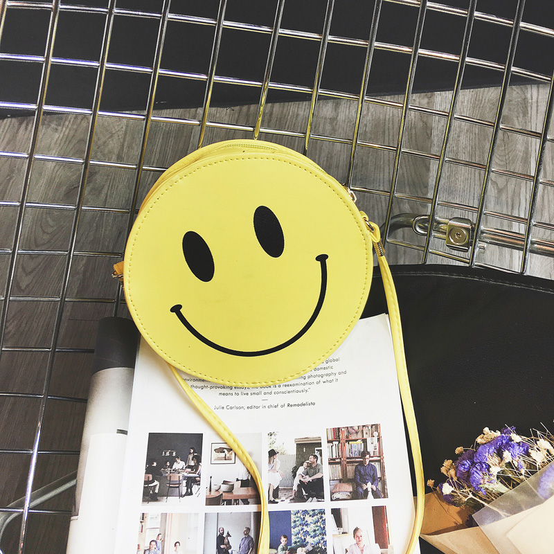 / 笑臉女包圓形包包小包斜挎包單肩包小圓包手提包女休閑復古包