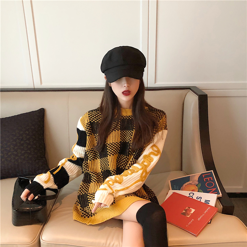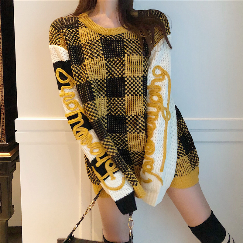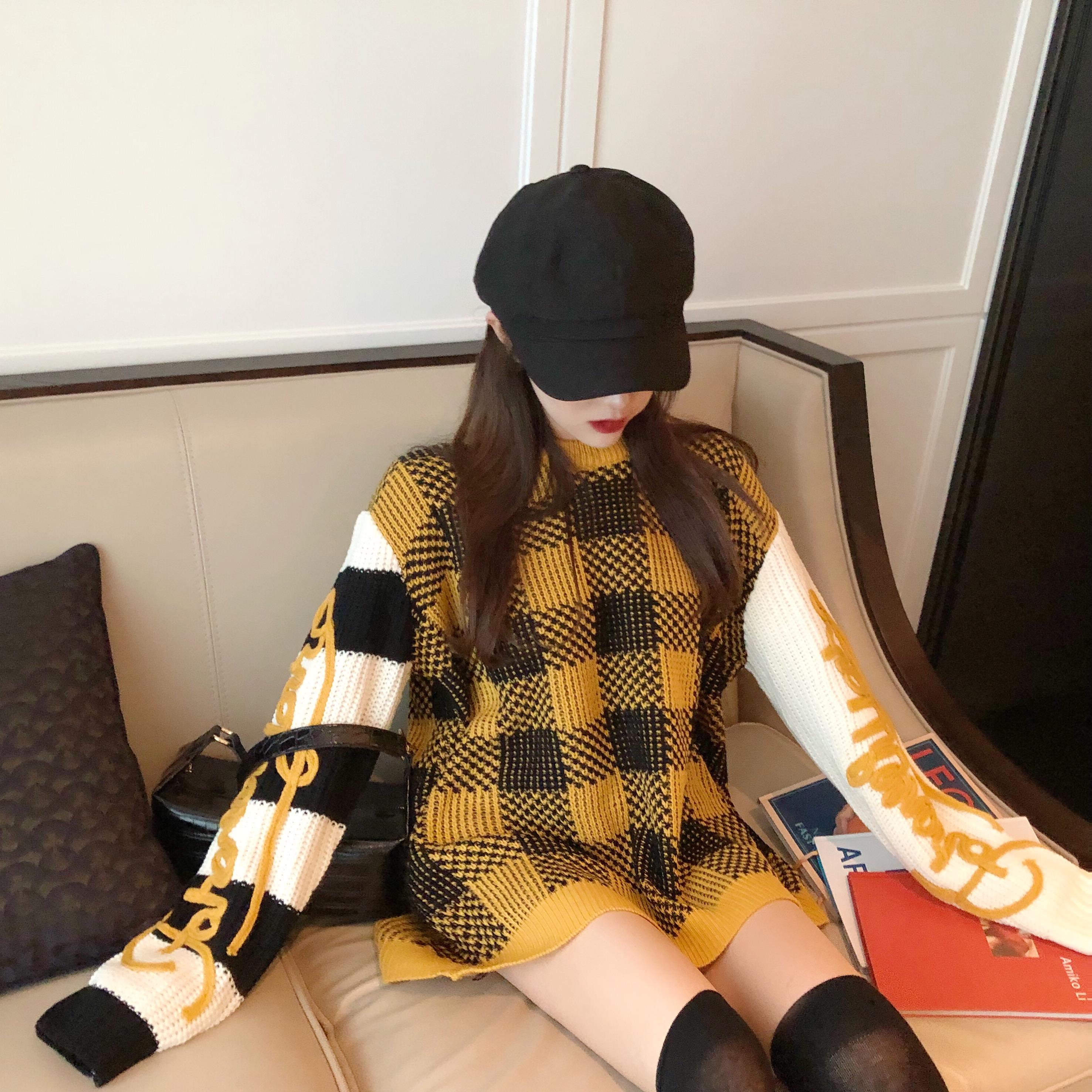 2018秋冬新款韓版格子網紅毛衣女寬松慵懶風上衣潮外穿毛線衣套頭