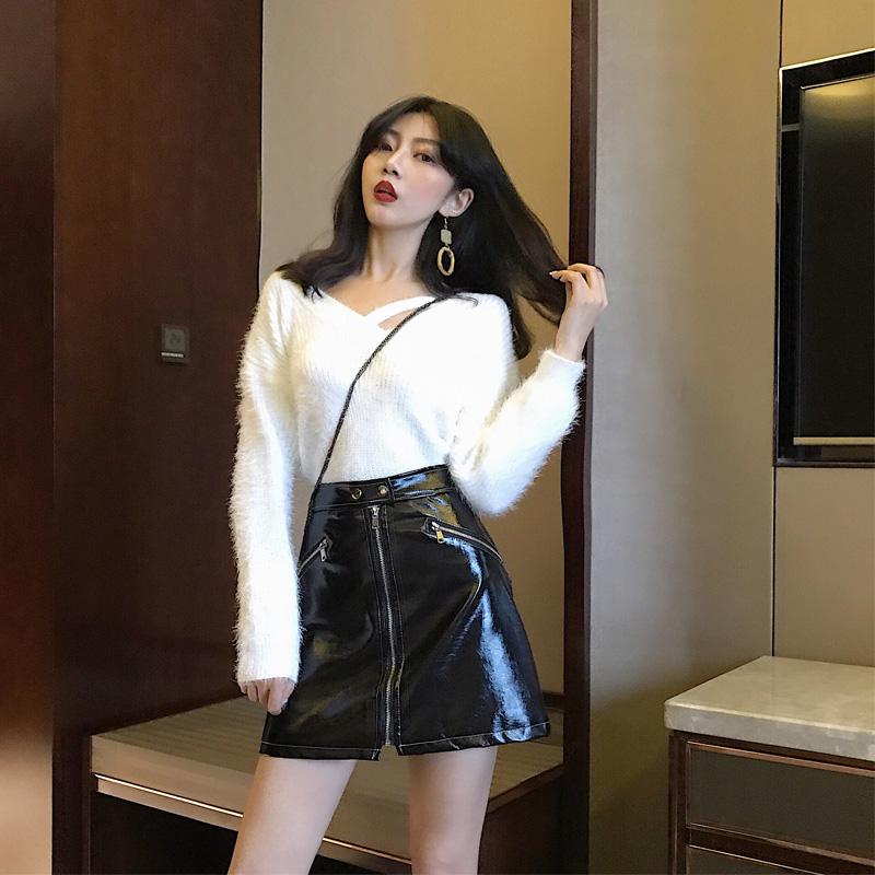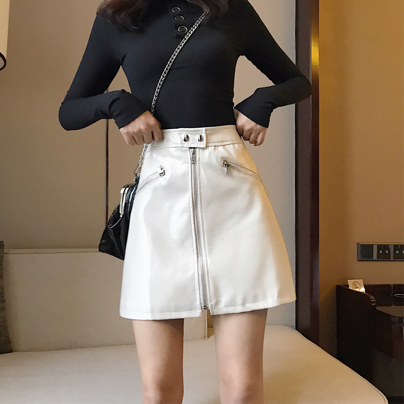 / 港味百搭時髦拉鏈亮皮PU皮裙設計感修身高腰A字包臀半身裙短裙女