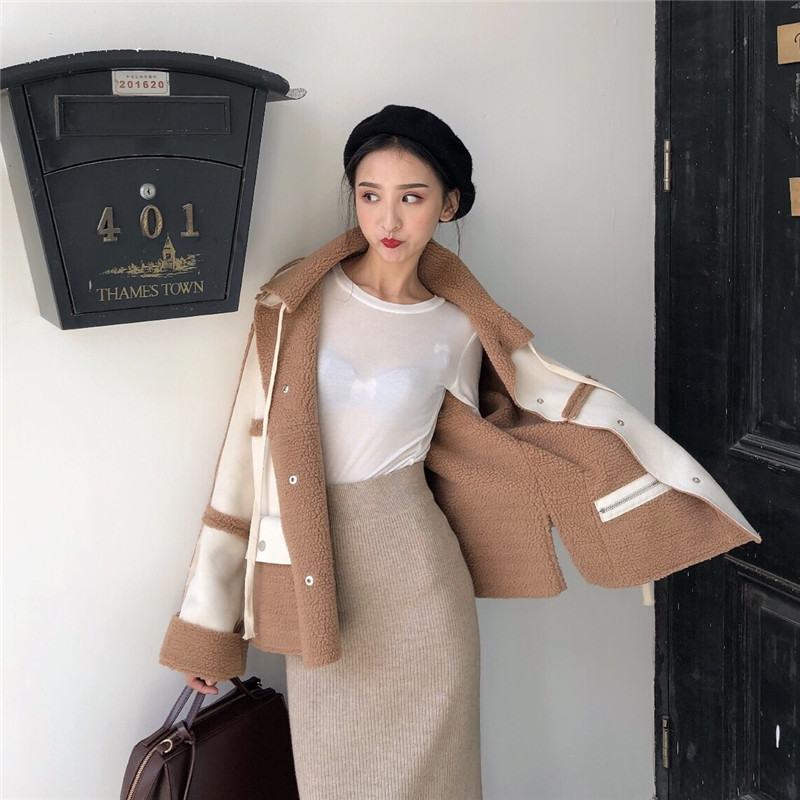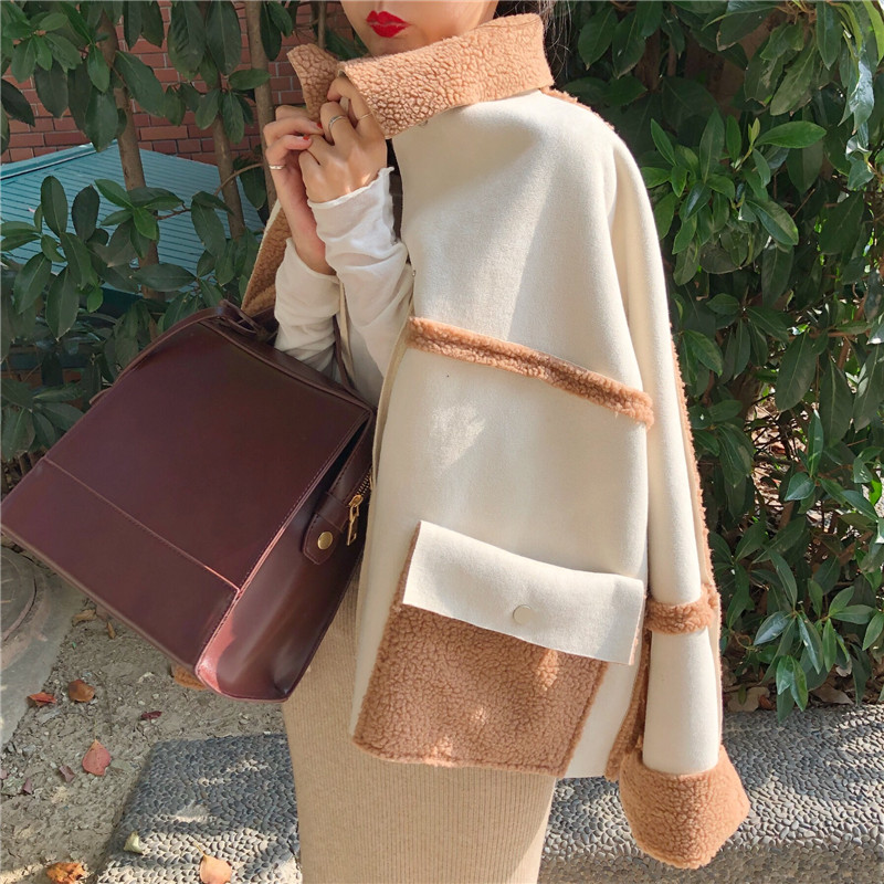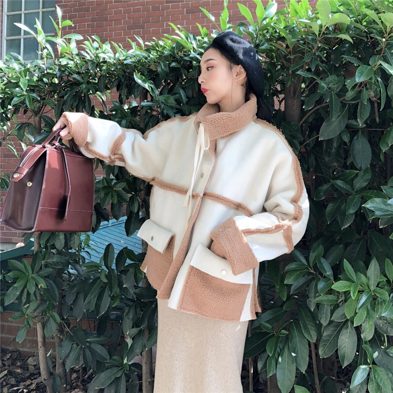 / 韓版加厚新款秋冬時尚chic保暖加厚兩面穿復古寬松翻領系帶外套女