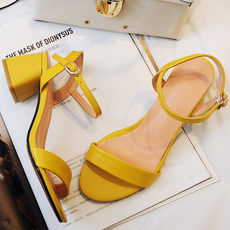 高跟鞋女涼鞋夏新款春天百搭一字扣低幫粗跟女士羅馬涼鞋女鞋