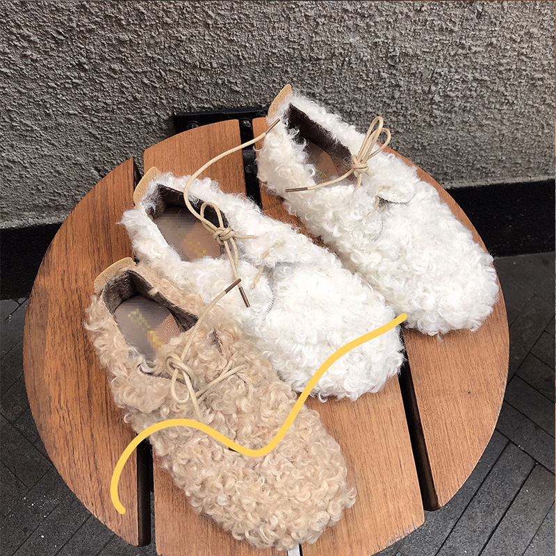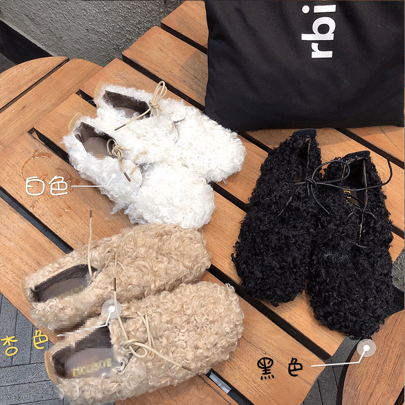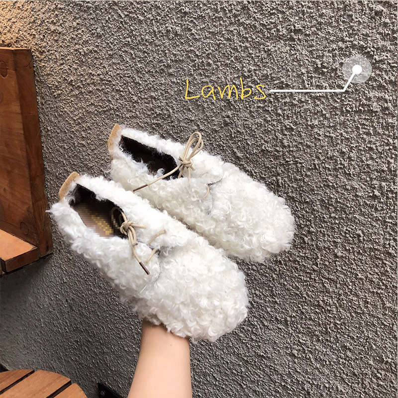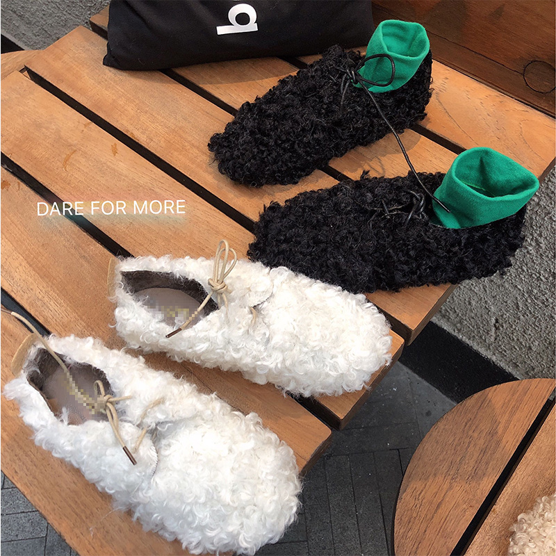 / 2018秋冬新款韓版網紅毛毛鞋平底時尚氣質百搭圓頭系帶懶人鞋潮