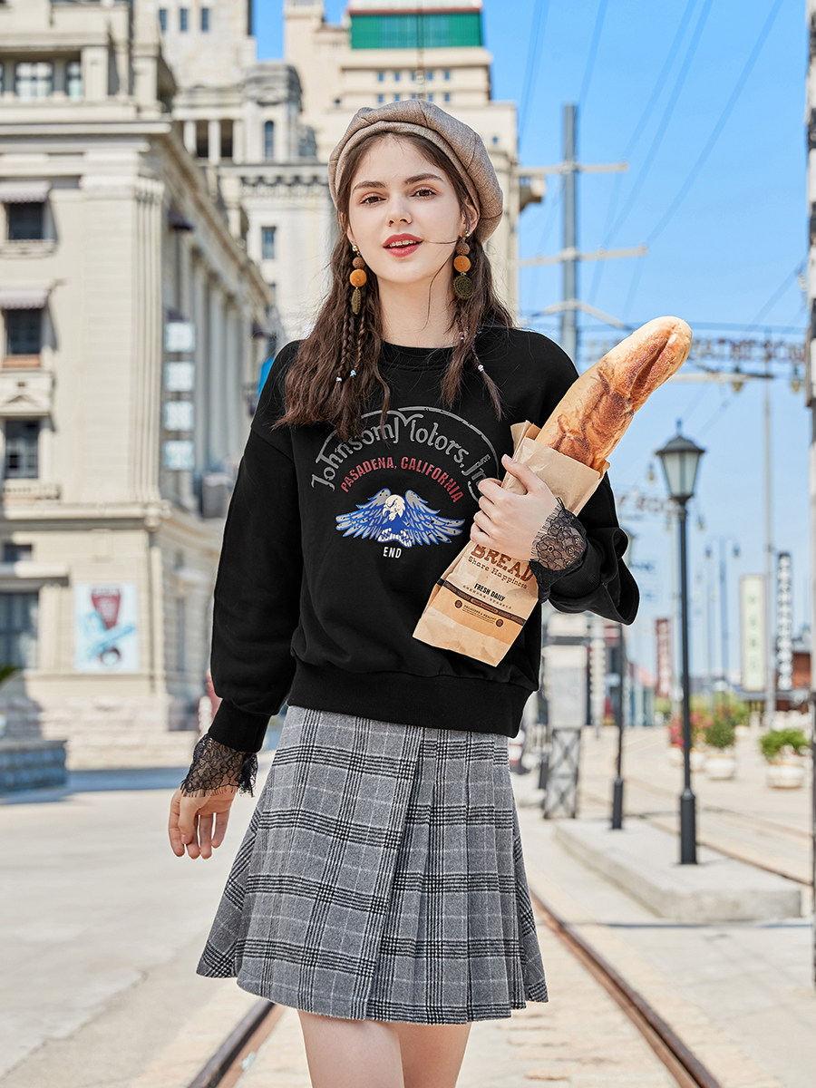 / MG小象蕾絲拼接衛衣女寬松長袖秋冬2018新款學生圓領套頭chic上衣