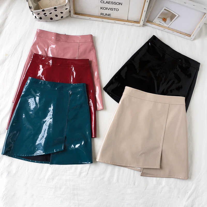 / 裙子新款復古chic韓版百搭亮皮秋季純色皮裙a字裙半身裙包臀裙女