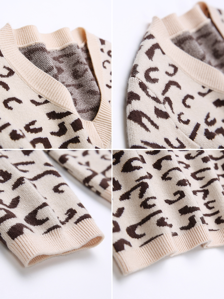 / 【直降50元】【58元雙11清倉】 MG小象時尚氣質v領休閑豹紋毛衣