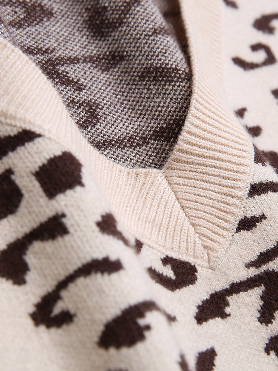 【直降50元】【58元雙11清倉】 MG小象時尚氣質v領休閑豹紋毛衣