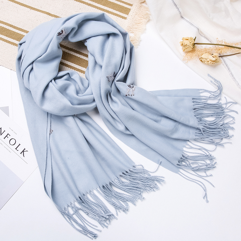 MG小象保暖刺繡圍巾女冬季長款韓版學生披肩2018新款小清新圍脖潮