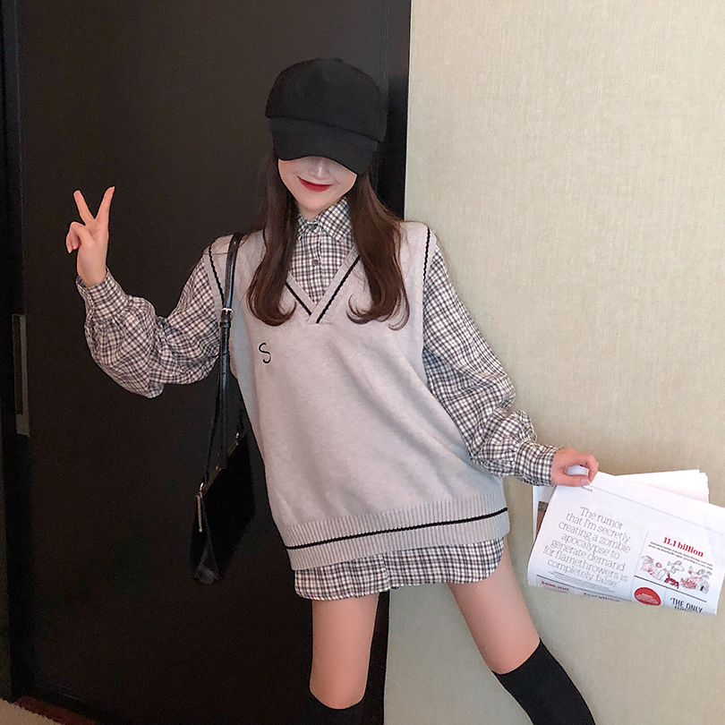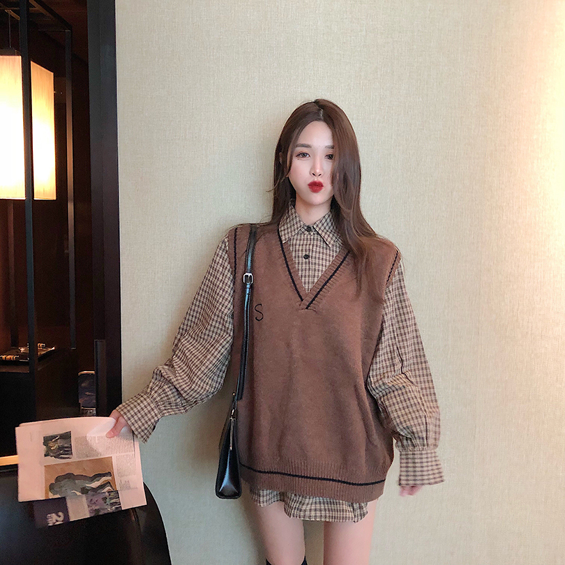 馬甲和襯衫都是寬松版的,oversize超藏肉顯瘦,包容身材