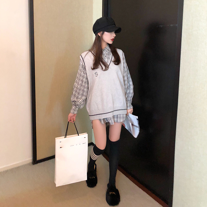 襯衫是中長款,套上馬甲可以露出衣擺,穿出下身失蹤的感覺
