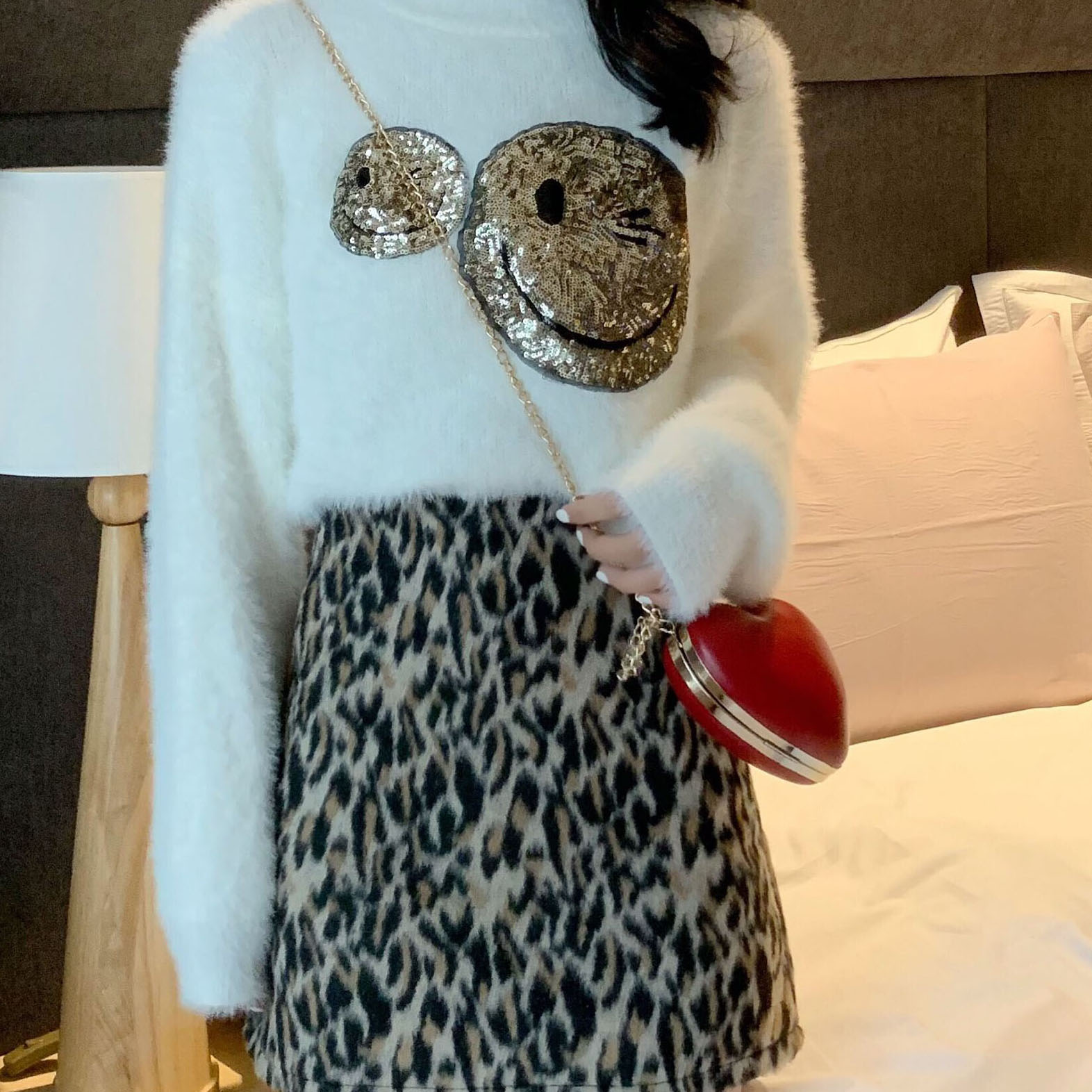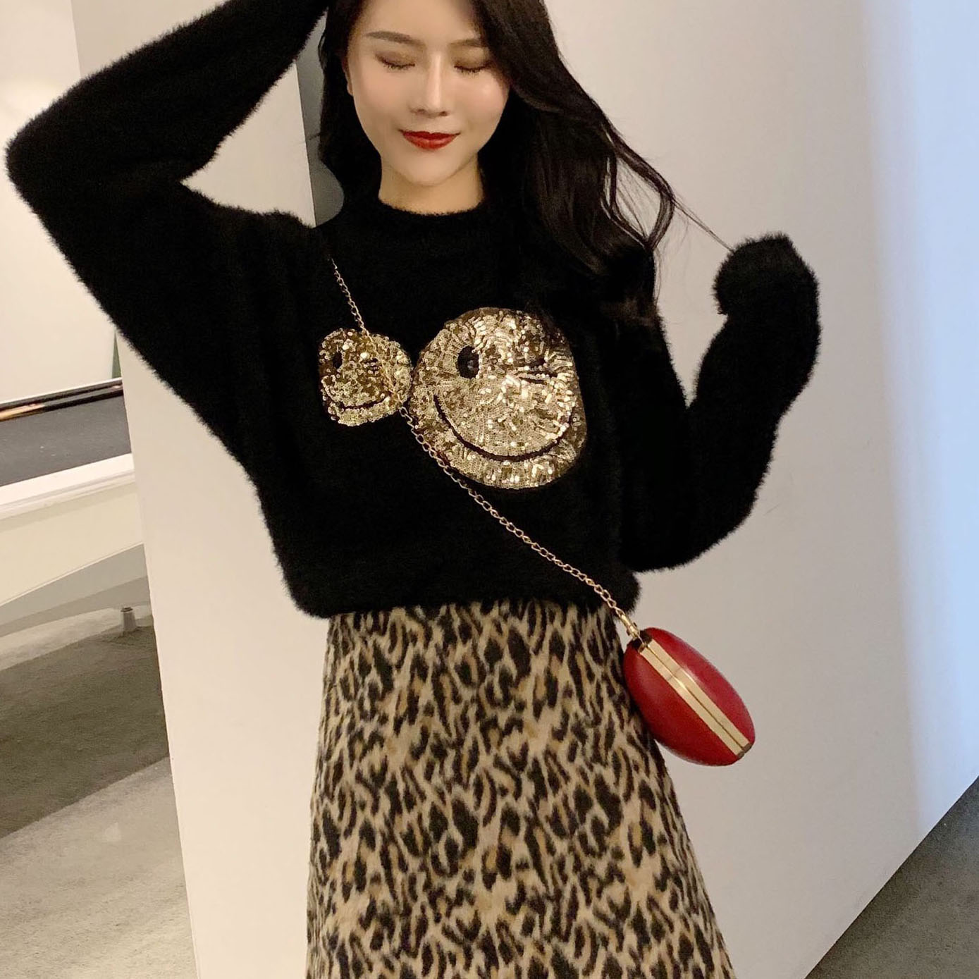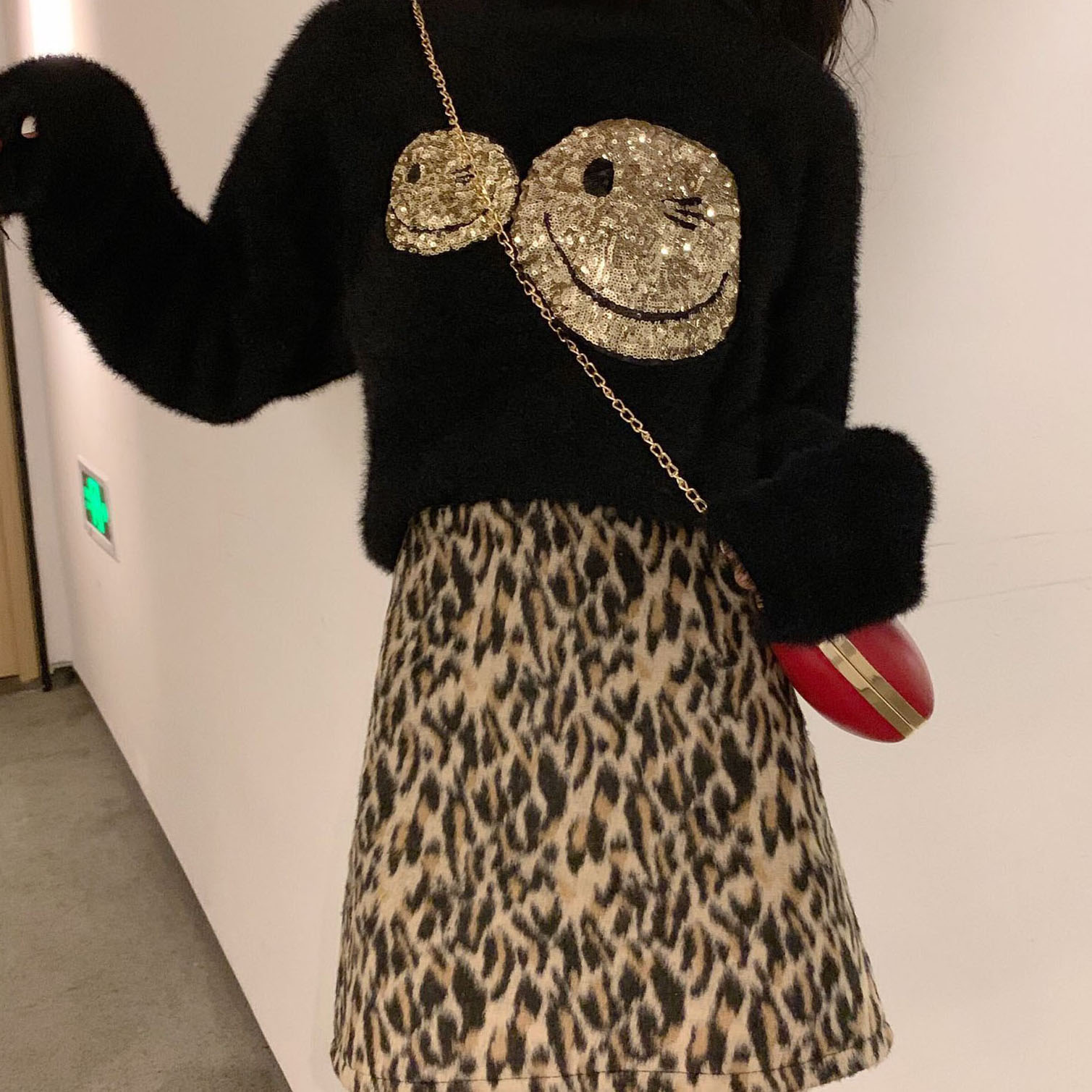 白色毛衣|黑色毛衣|豹紋短裙