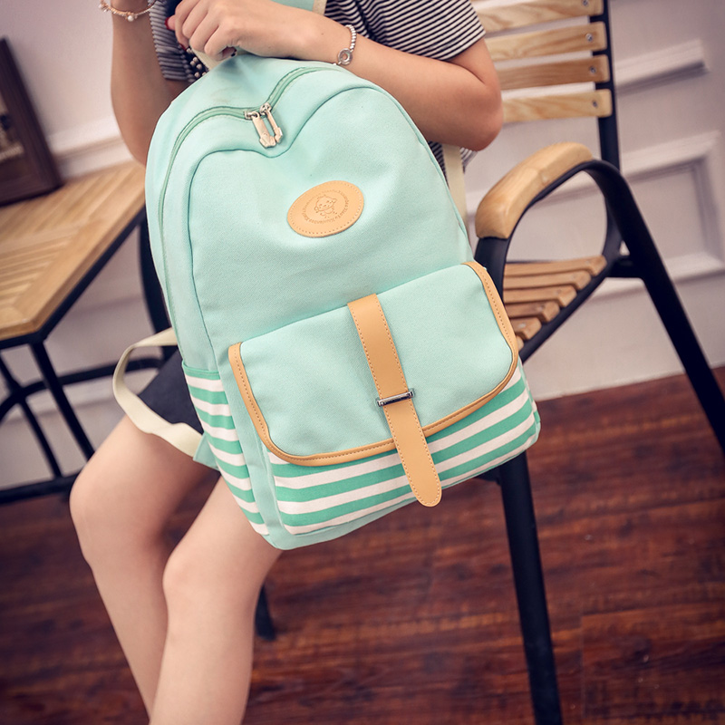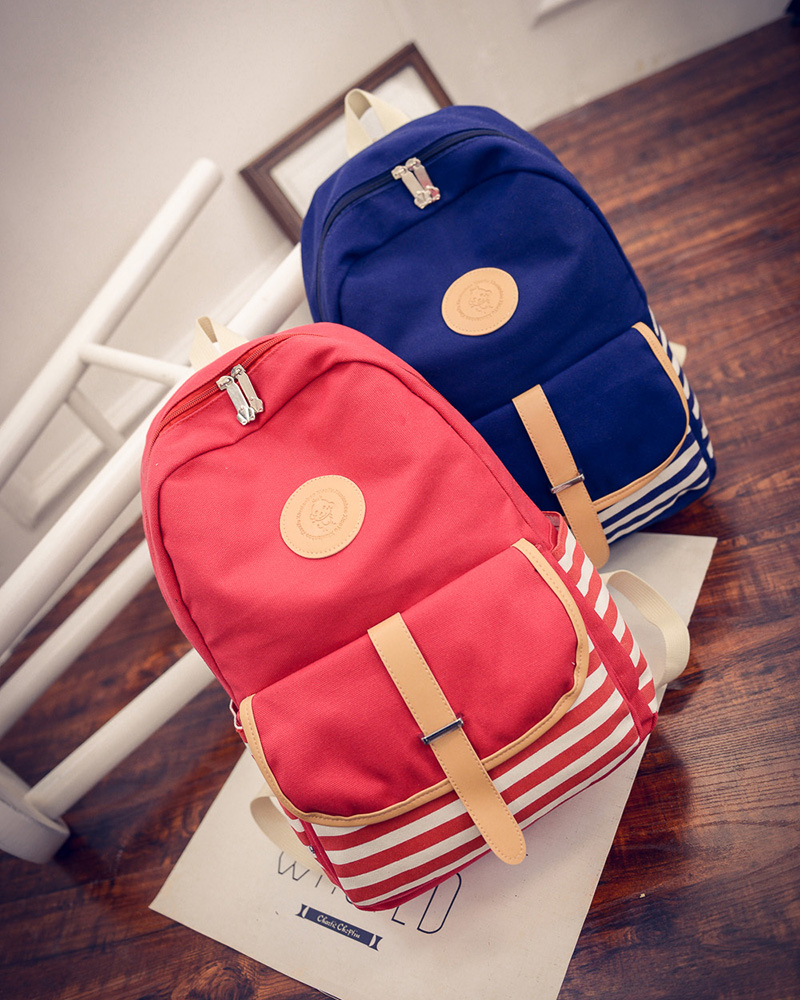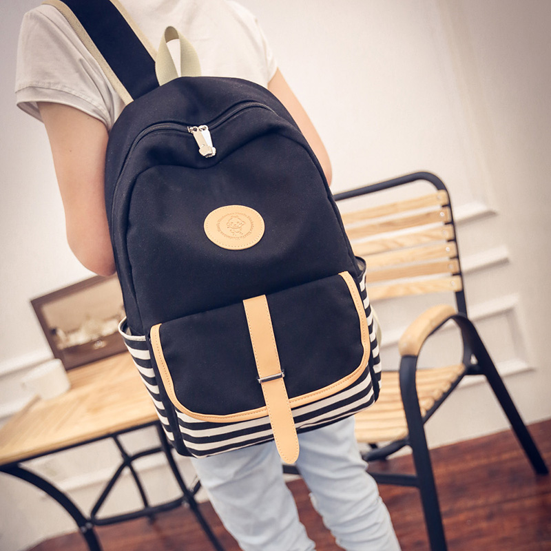/ 日韓版潮英倫校園學院風初中高中學生帆布條紋書包女大學生雙肩包