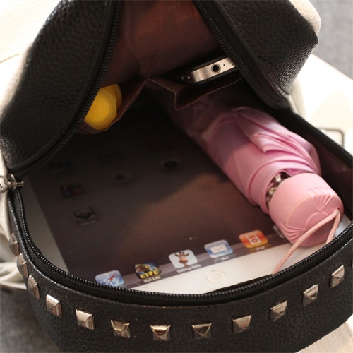 2017新款鉚釘雙肩包女韓版撞色背包pu簡約女士包包女包潮