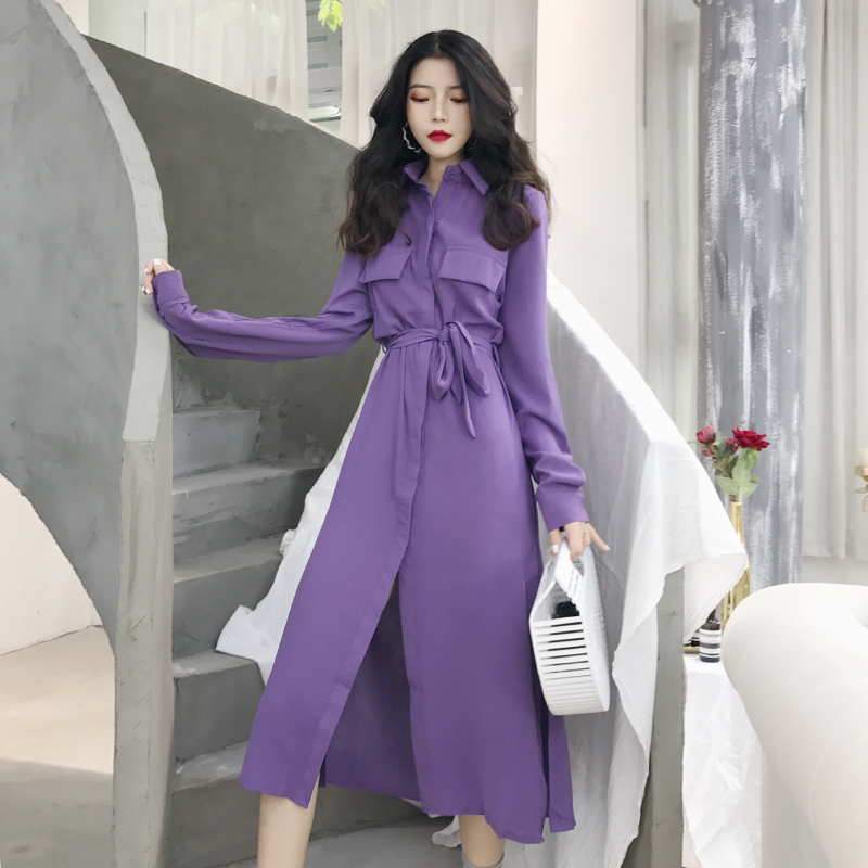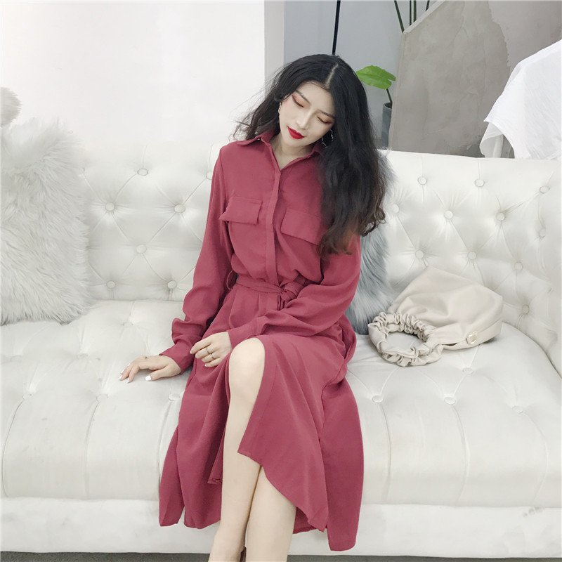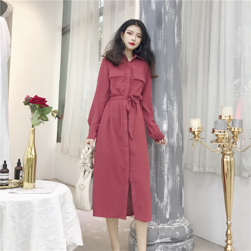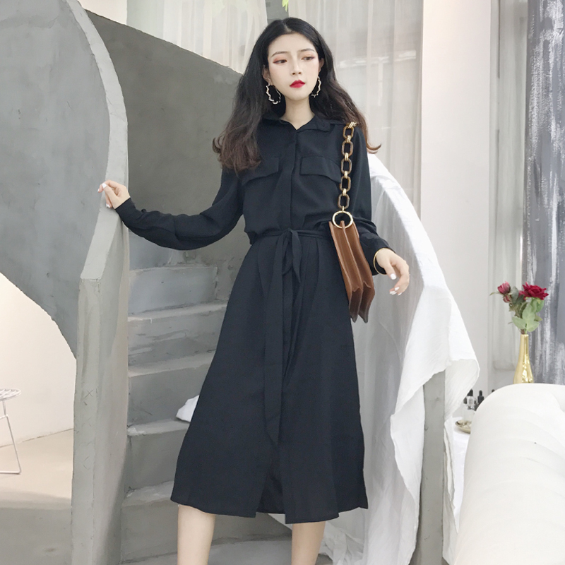 / 2018秋季新款韓版港風時尚晚晚風百搭中長款收腰氣質顯瘦連衣裙女