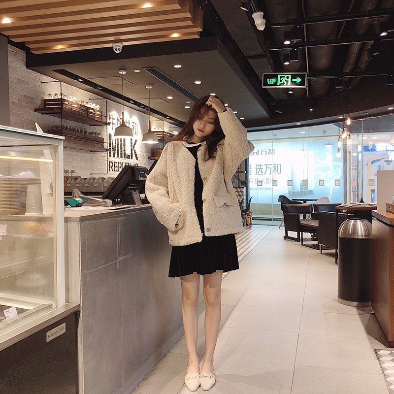 2018秋冬新款韓版短款毛茸茸毛呢外套女圈圈羊羔毛長袖大衣女上衣