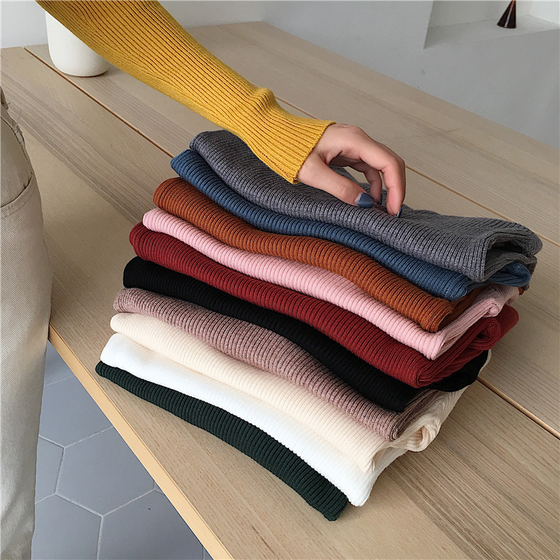 秋冬新款V領針織長袖修身緊身保暖打底衫上衣復古套頭顯瘦毛衣女