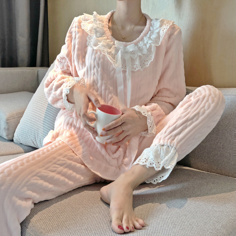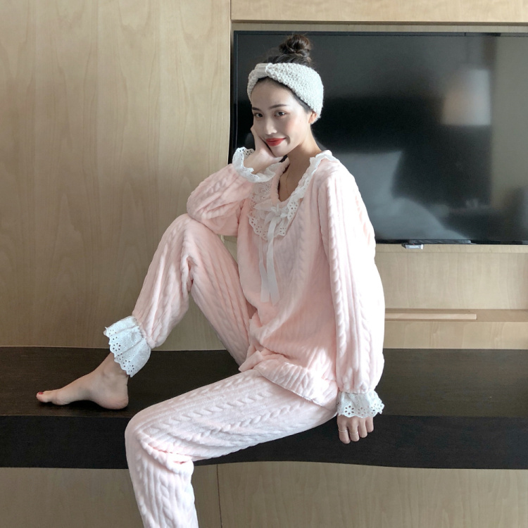 2018新款韓版舒適時尚秋冬加厚保暖花邊長袖睡衣家居服套裝少女潮