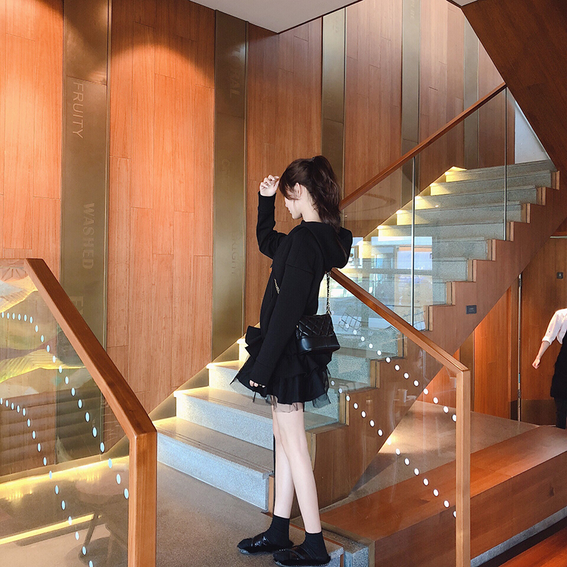 / 新款時尚衛衣連衣裙拼接假兩件紗裙少女茶歇裙長袖荷葉邊魚尾裙潮