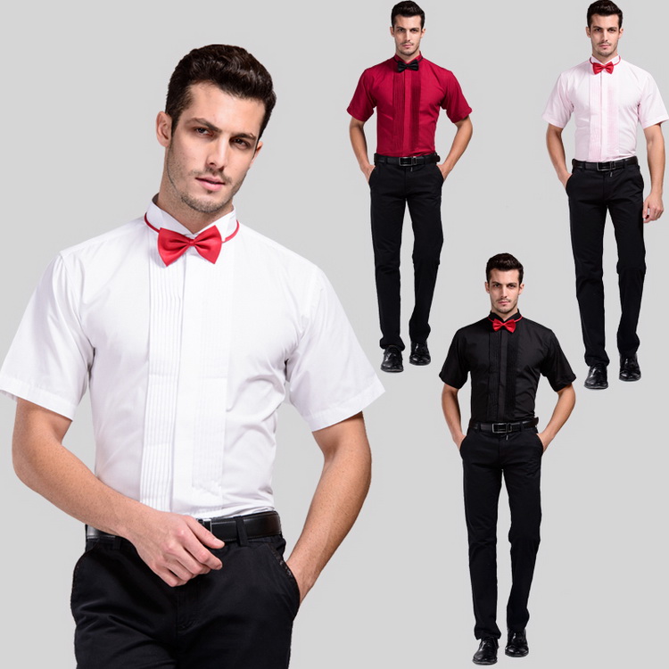 / 新郎結婚男士法式袖扣禮服襯衫燕子領演出派對長袖修身領結襯衣男