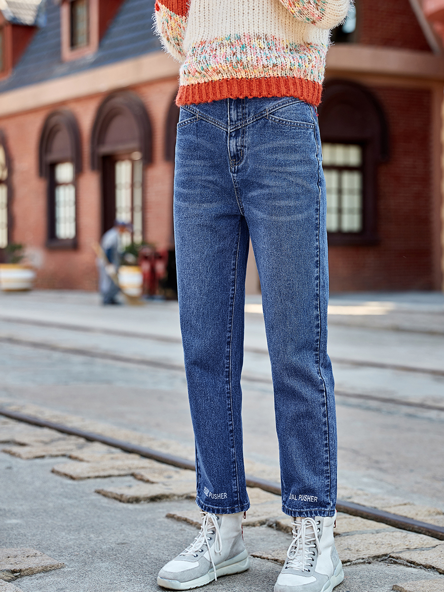 MG小象高腰牛仔褲女寬松顯瘦直筒褲2018秋冬新款港味復古chic褲子