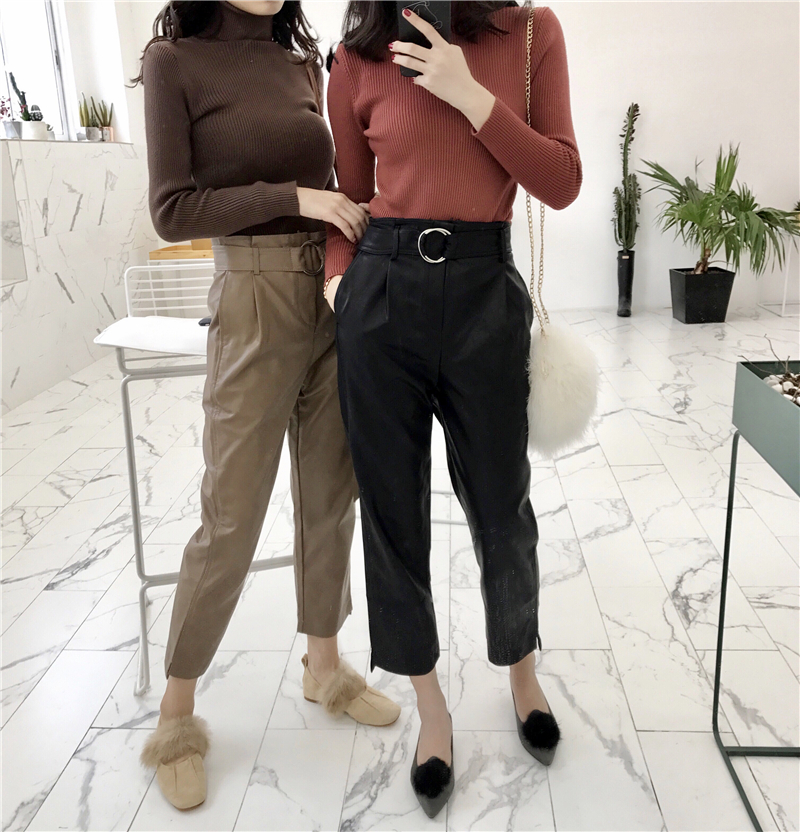 長袖2018新款秋季上衣韓版修身百搭彈力柔軟高領復古針織衫打底女