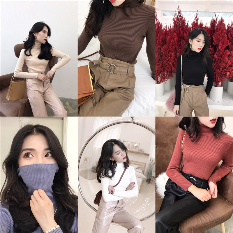 / 長袖2018新款秋季上衣韓版修身百搭彈力柔軟高領復古針織衫打底女
