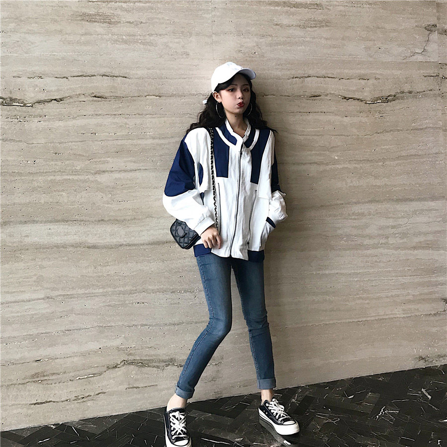 2018新款韓版小清新學生網紅同款小香風拼色短款夾克棒球開衫外套