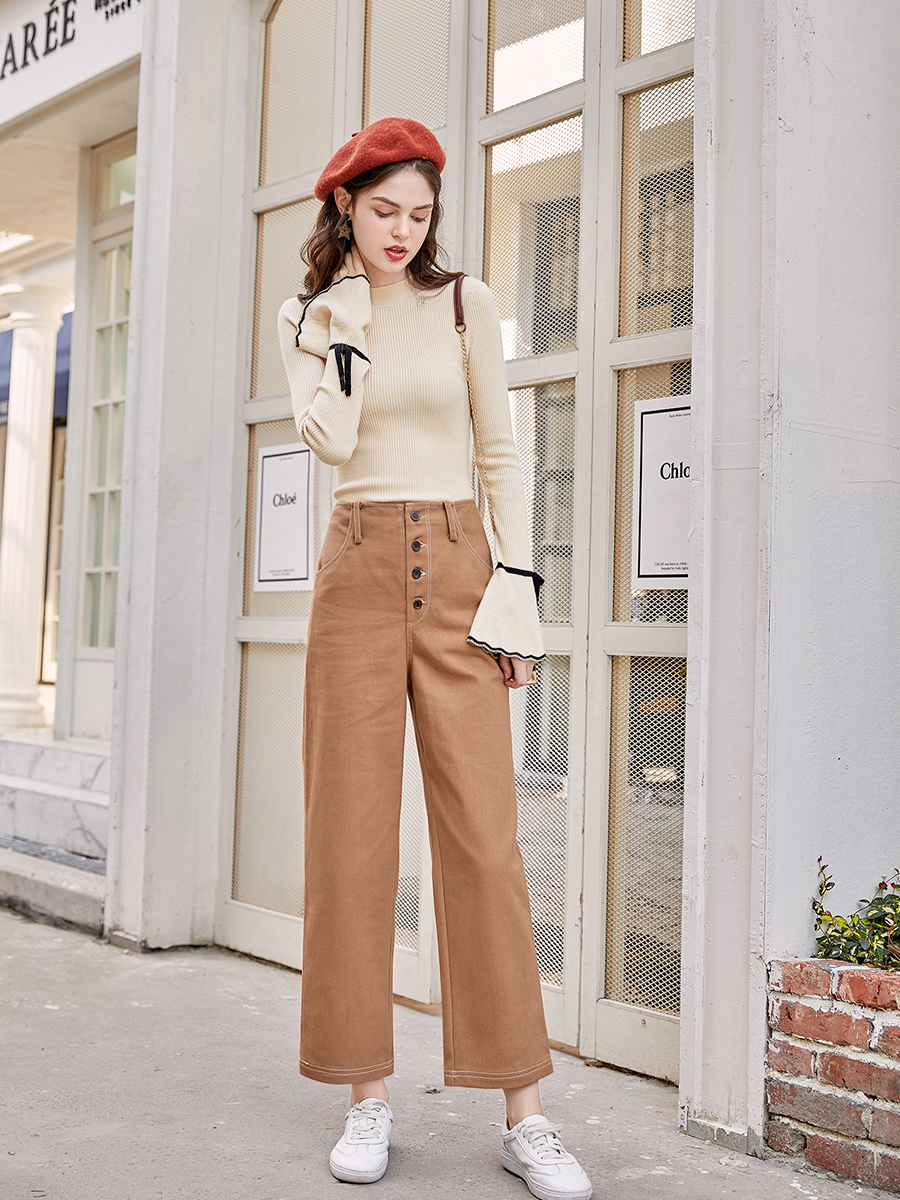 MG小象純棉高腰直筒褲女2018新款寬松學生休閑長褲秋季chic風褲子