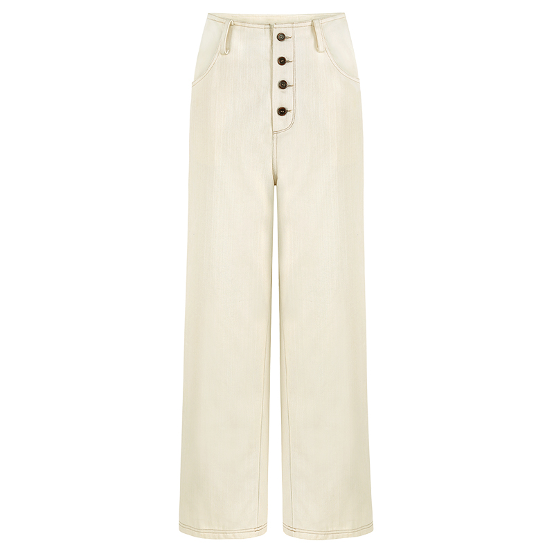 / MG小象純棉高腰直筒褲女2018新款寬松學生休閑長褲秋季chic風褲子
