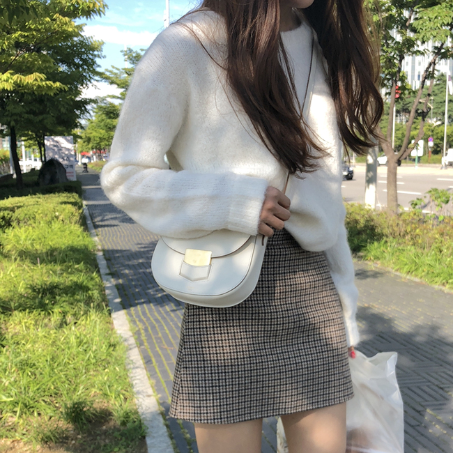 白色毛衣|杏色毛衣|格子條紋裙