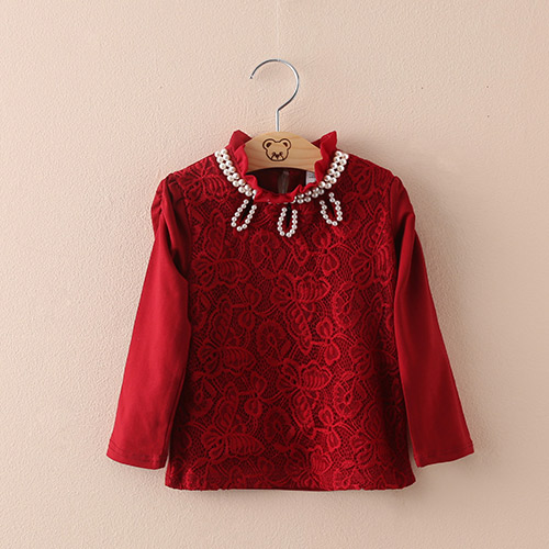 寶寶珍珠打底衫 秋裝韓版新款童裝女童裝兒童蕾絲T恤tx-6087