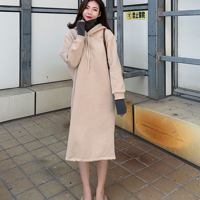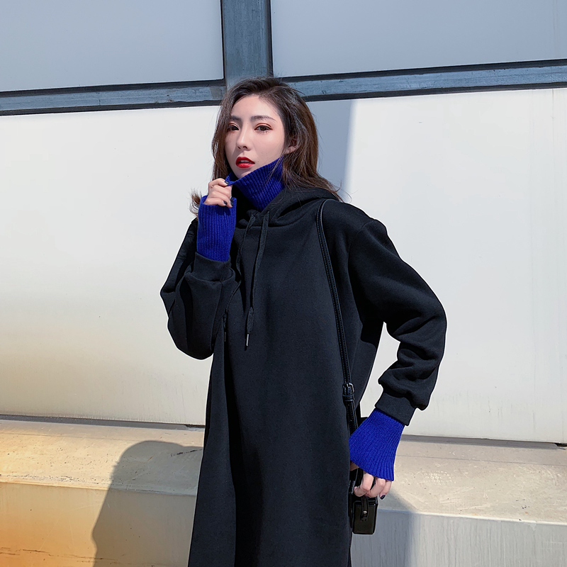 衛衣2018新款女長袖韓版寬松顯瘦oversize印花半高領慵懶長款裙子