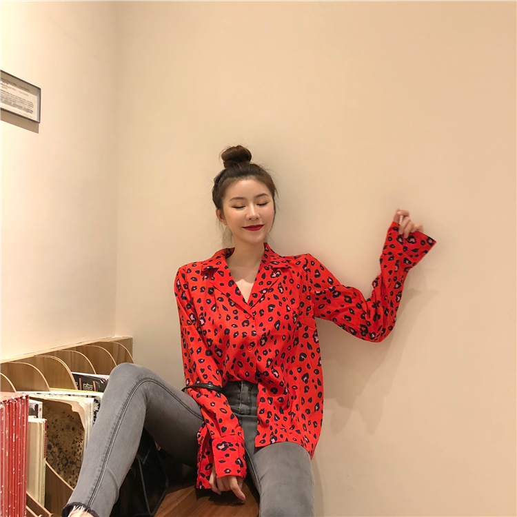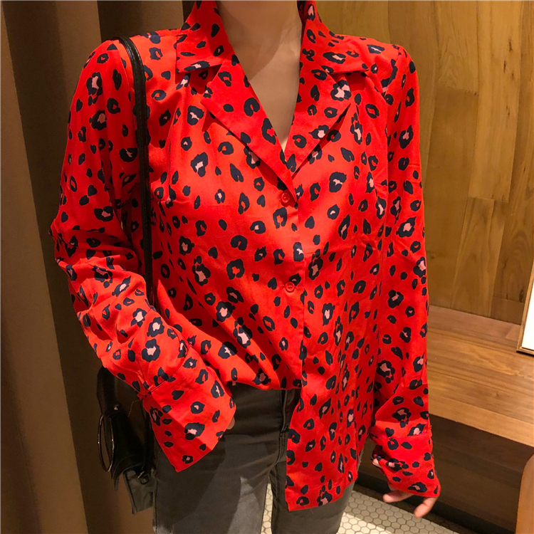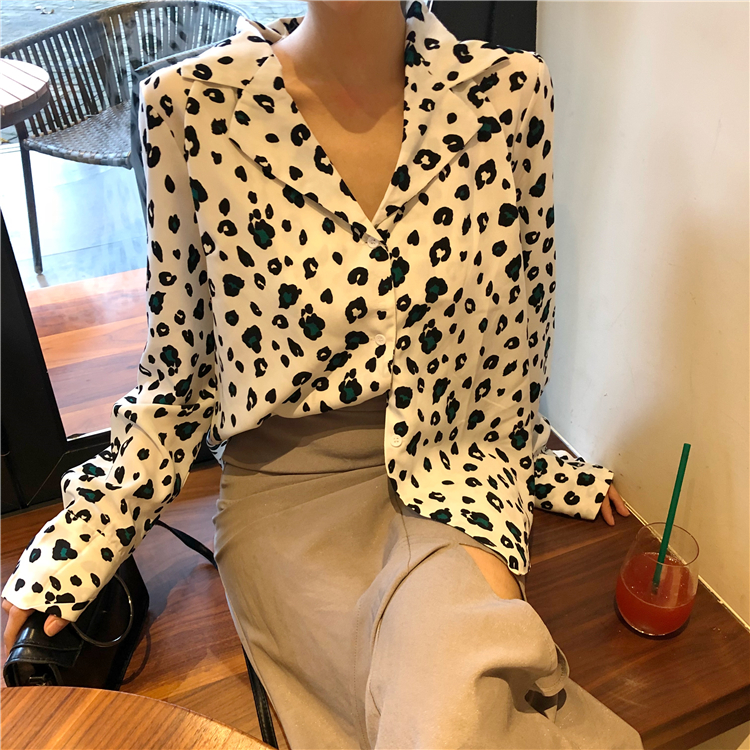 / 減齡2018年秋季韓國小心機豹紋長袖襯衫時尚潮流耀眼翻領上衣女裝