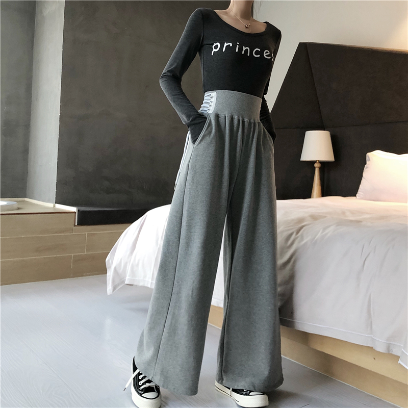 / 新款百搭圓領字母印花T恤高腰闊腿褲晚晚風休閑時尚港味氣質套裝