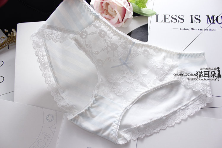 推薦款,舒適款 簡潔大氣的條紋,拼接潔凈白色蕾絲蕾絲 豐富的設計,精致的緞帶蝴蝶結,甜美可人 版型簡單大氣 舒適包臀,選用優質純棉 做工精細剪裁考究,版型不挑人,蕾絲漂亮時尚 中腰版型,更舒適 色彩淡雅宜人,必備款哦 減齡清新,推薦!