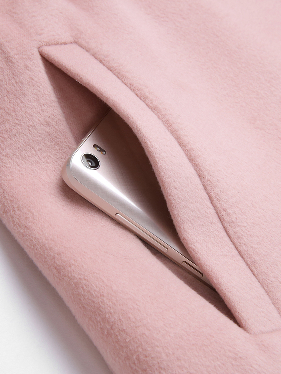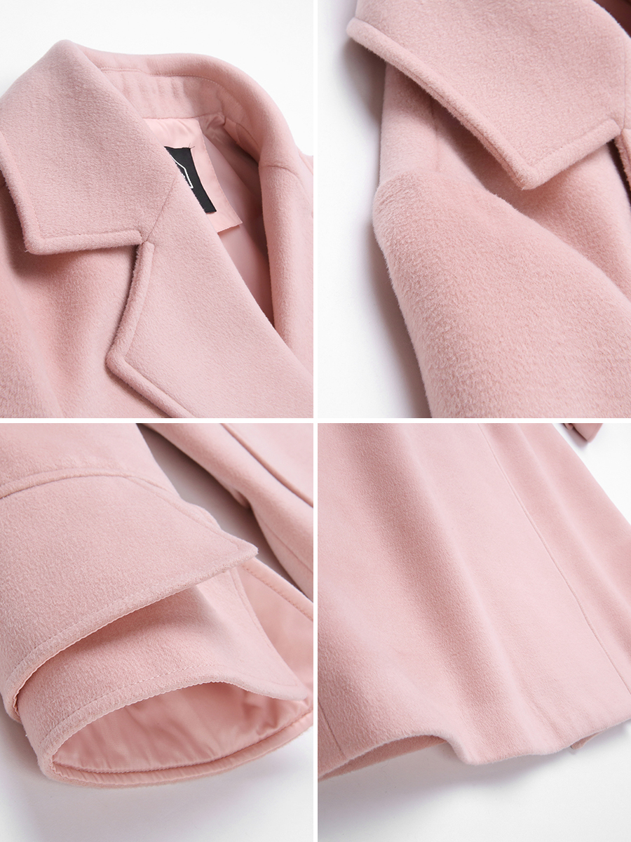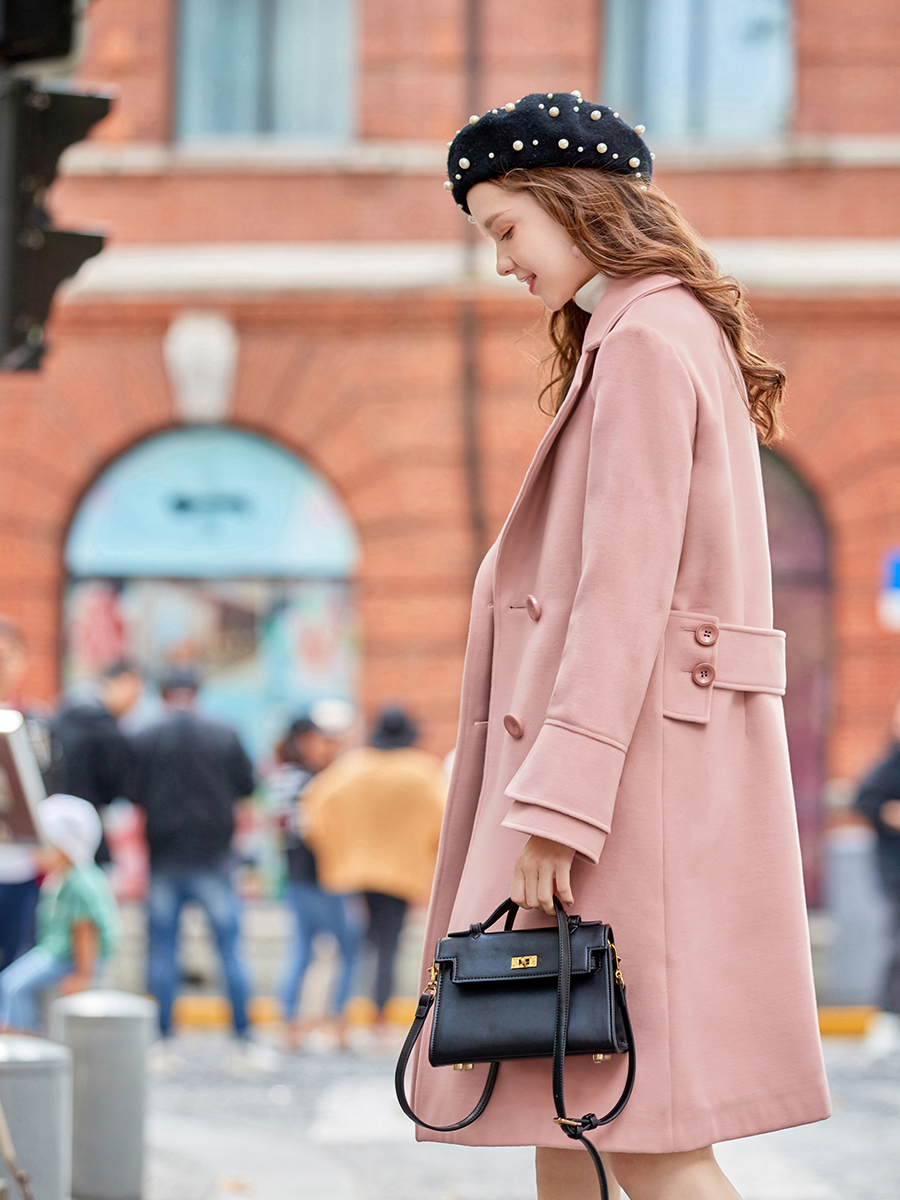 MG小象雙排扣毛呢外套女中長款過膝2018新款寬松收腰粉色呢大衣潮