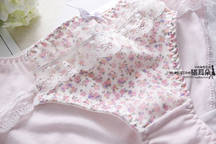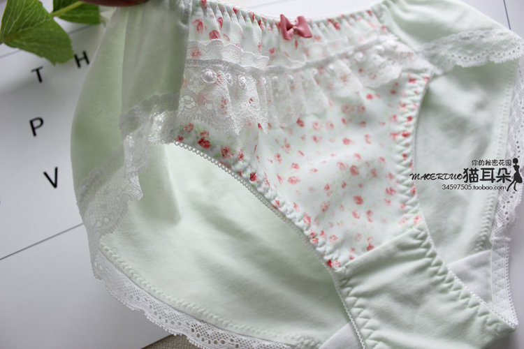 材質選用超細柔軟棉,給肌膚柔軟舒適度 整件小內內,親膚柔軟 給人那份骨子里散發出來的輕尚浪漫氣質 前片 碎花雪紡面料,里面是一層薄棉,不透 腰部鑲嵌白色精選蕾絲 基本中腰包臀款式,推薦入